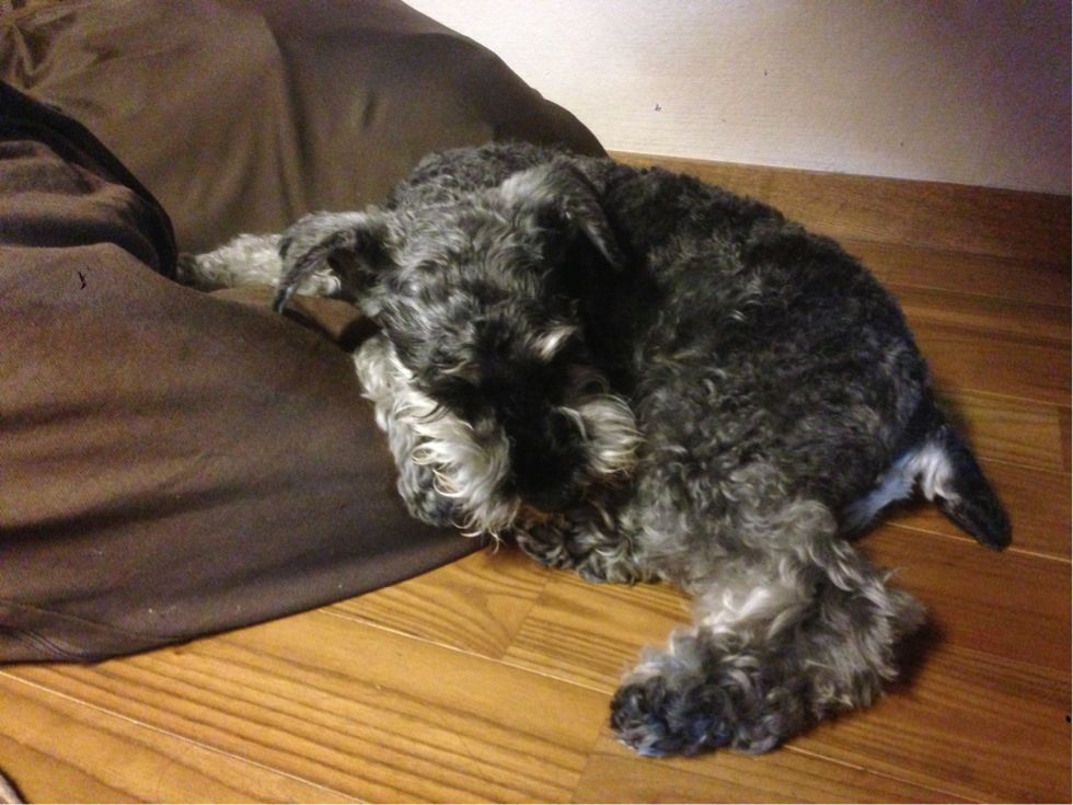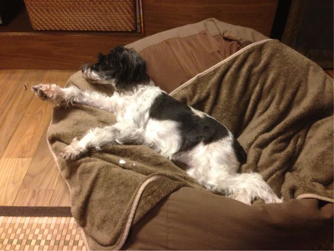 wasabiさんに踏まれても起きないsheeta。