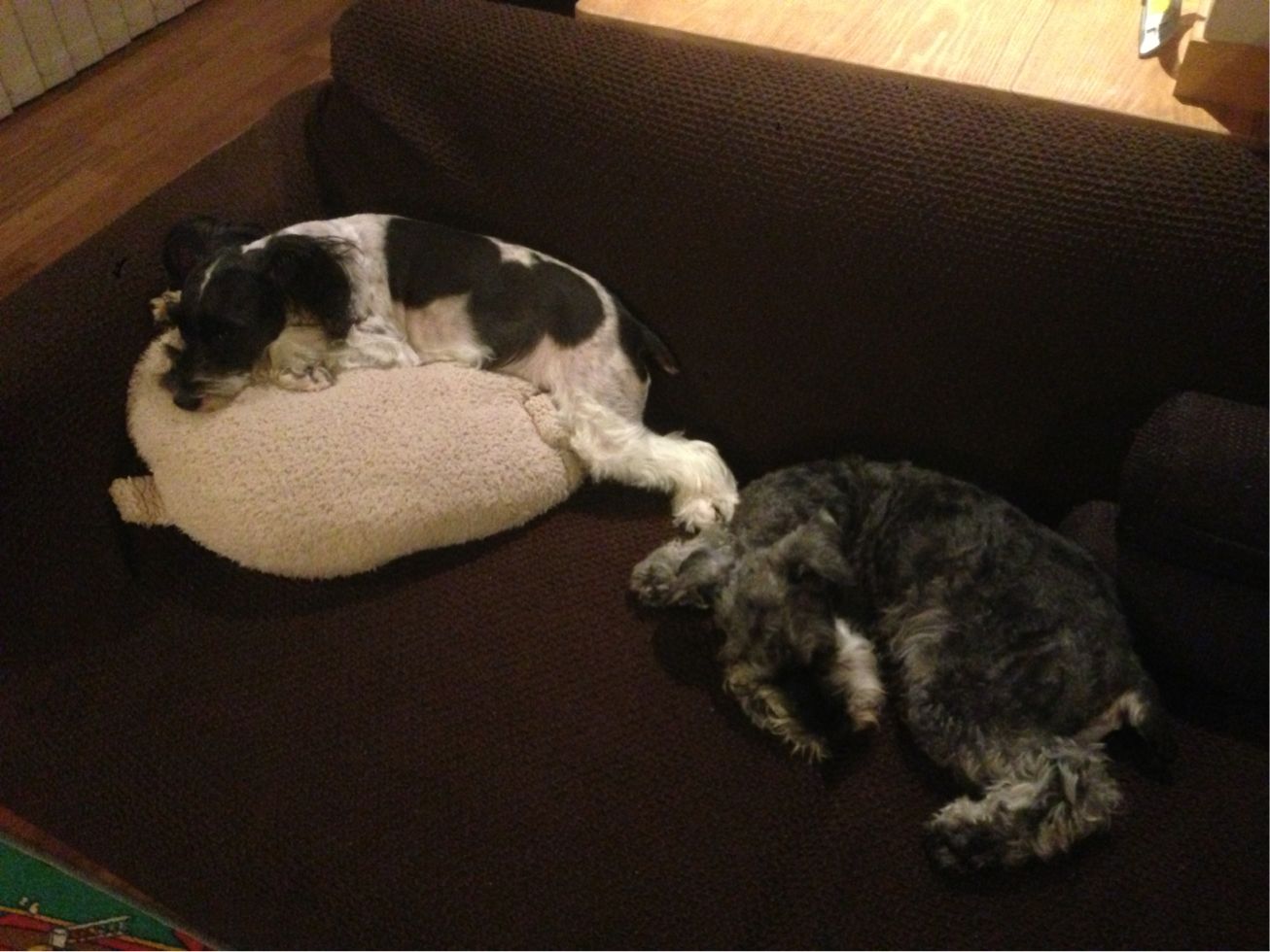 家に帰ると、珍しく2ワンともソファーで寝てました。
