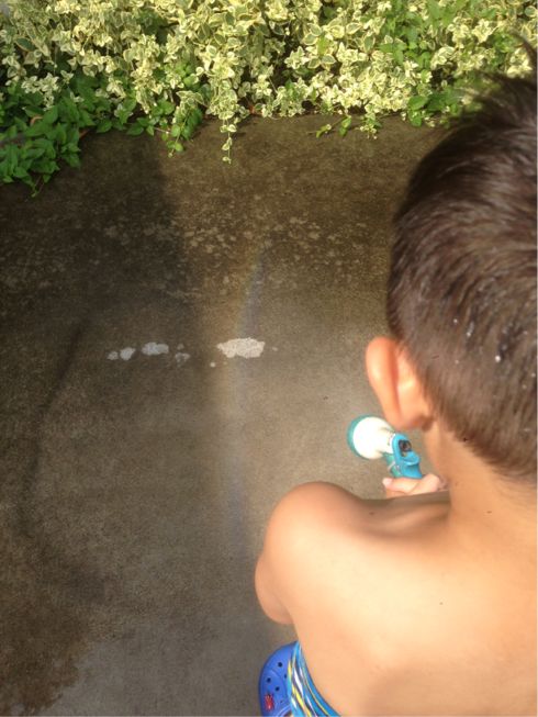水遊びしていたら、虹が出たそうです♪