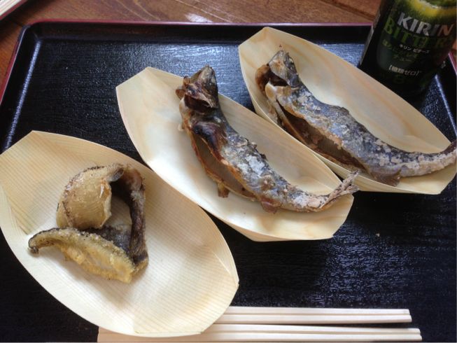釣ったニジマスは1匹200円で塩焼きや唐揚げにしてくれます。