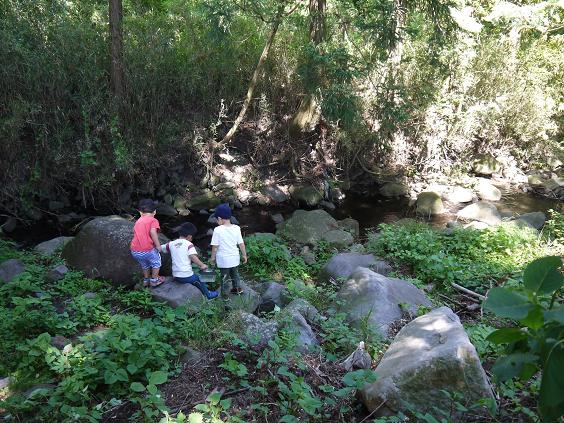 小川を渡って向こう岸へ行ったり~。