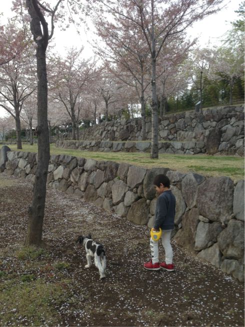 帰ってくるのを待って、最後の(?)お花見に出掛けました。