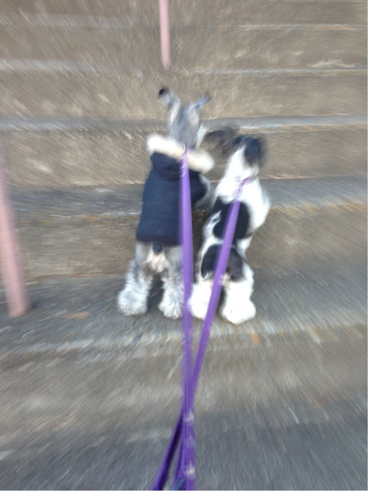 毎日違うコートを着てwasabi達のお散歩へ~。