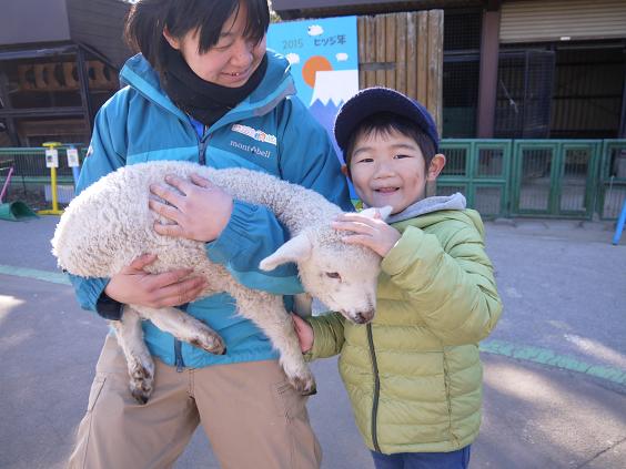 子ひつじを抱っこした飼育員さんがいたので写真撮影を頼むと、