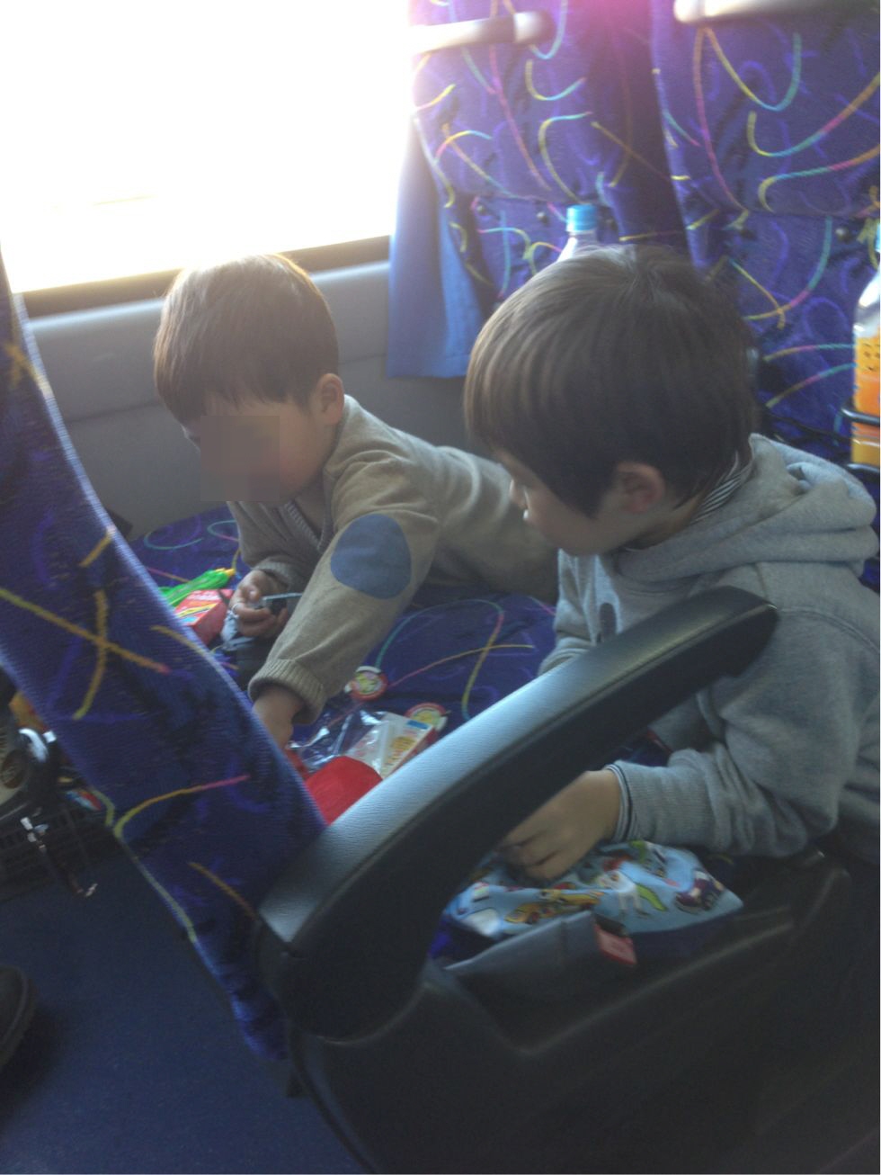 バスを降りるとすぐに手を繋いでガイドさんに付いて行ったり。