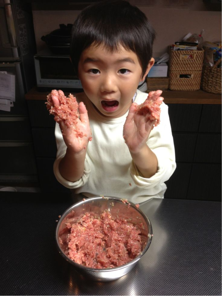 今夜のハンバーグはsheetaにコネコネしてもらいました。