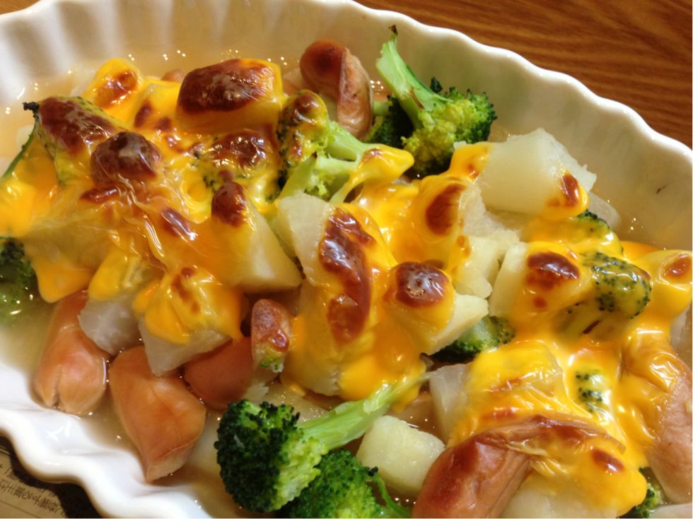 大根&カブ&ジャガイモ&ブロッコリー&ソーセージを、
