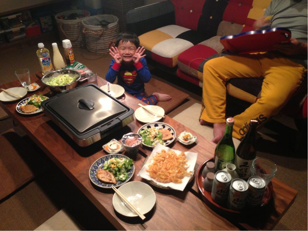 旅行に出掛けた母に置いて行かれた父を呼んでお好み焼き♪