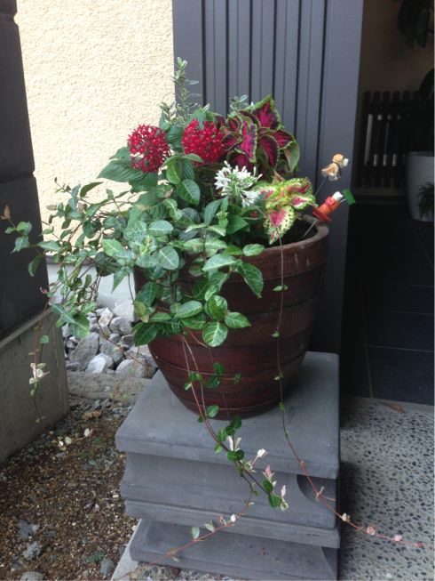 玄関先の鉢を植え替えました。