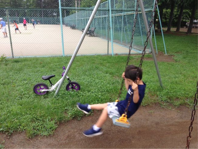 真夏に外でストライダーは無理なので、