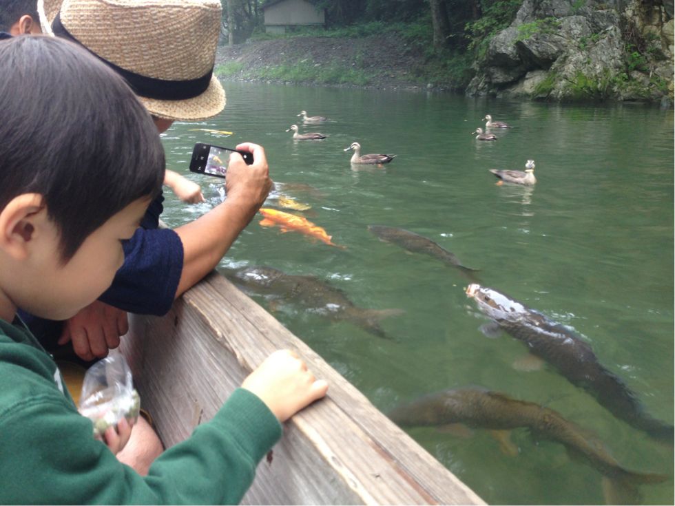 屋根で景色が見づらい分、魚やカモのエサやりに力が入ります。(笑)