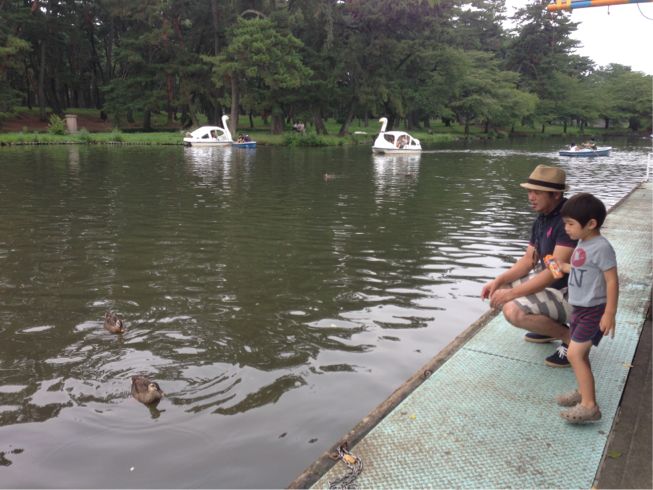 今日もカモや鯉にエサをあげ、
