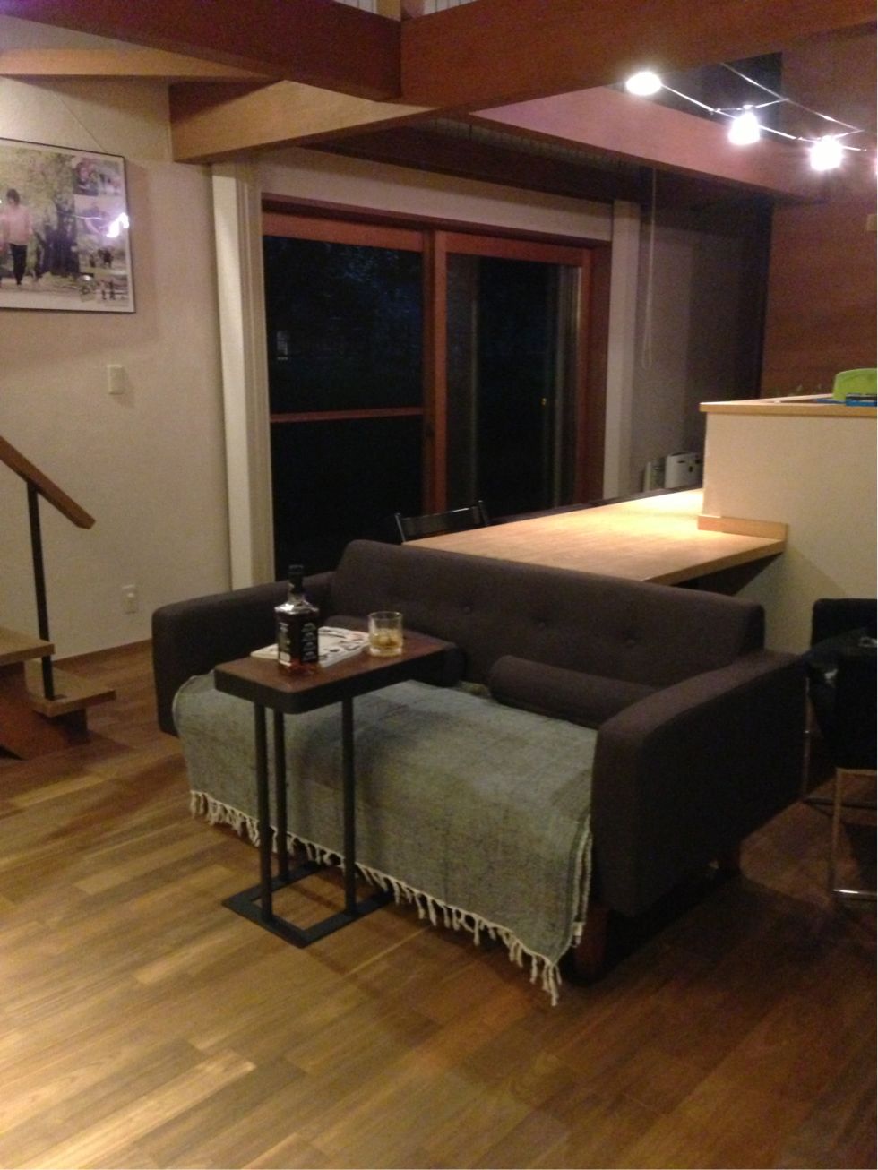カウンターを短くしたら、ソファーをその分後ろに下げられるので、