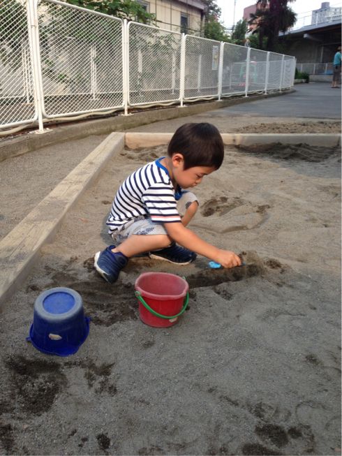 元々砂場は大好きで、幼稚園でもよく遊んでるらしく、