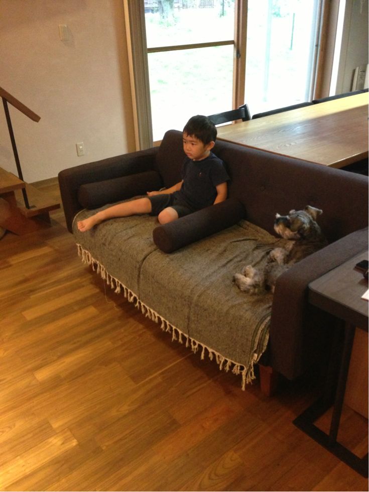 そして、家に戻るとsheeta初めてソファーとご対面しました。