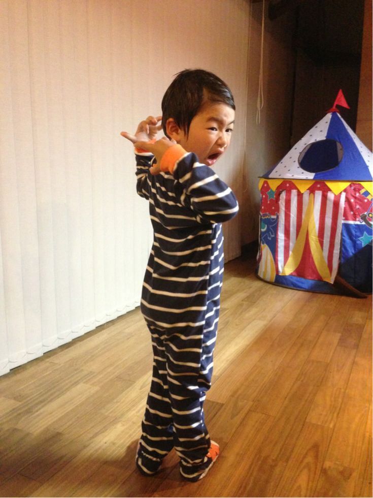 最近、暑くて布団をかけてくれないので久々のロンパース。