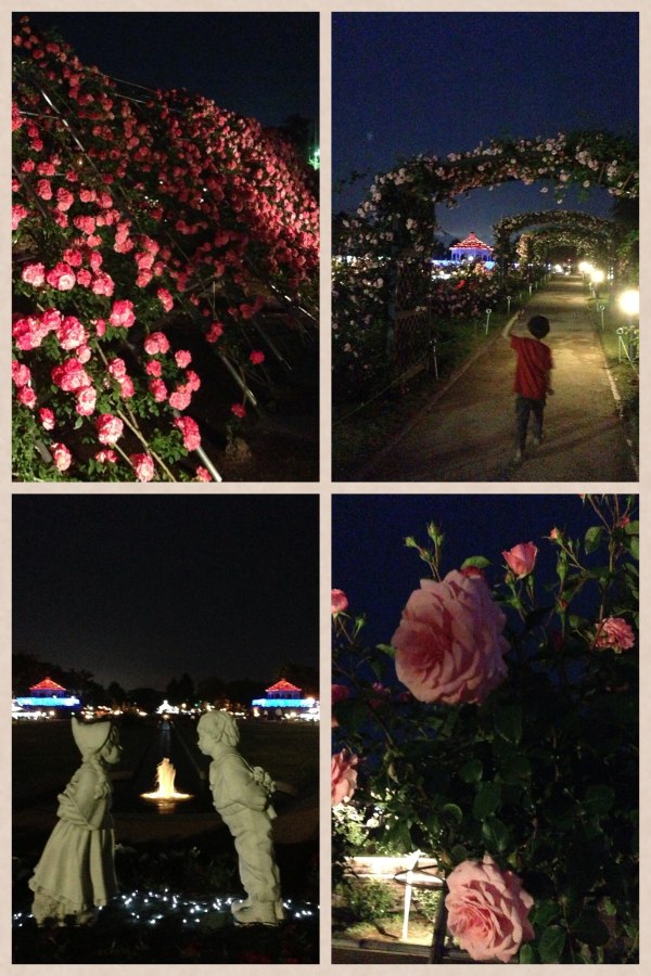 ってことで、自転車で夜のバラ園へ出掛けてみました♪
