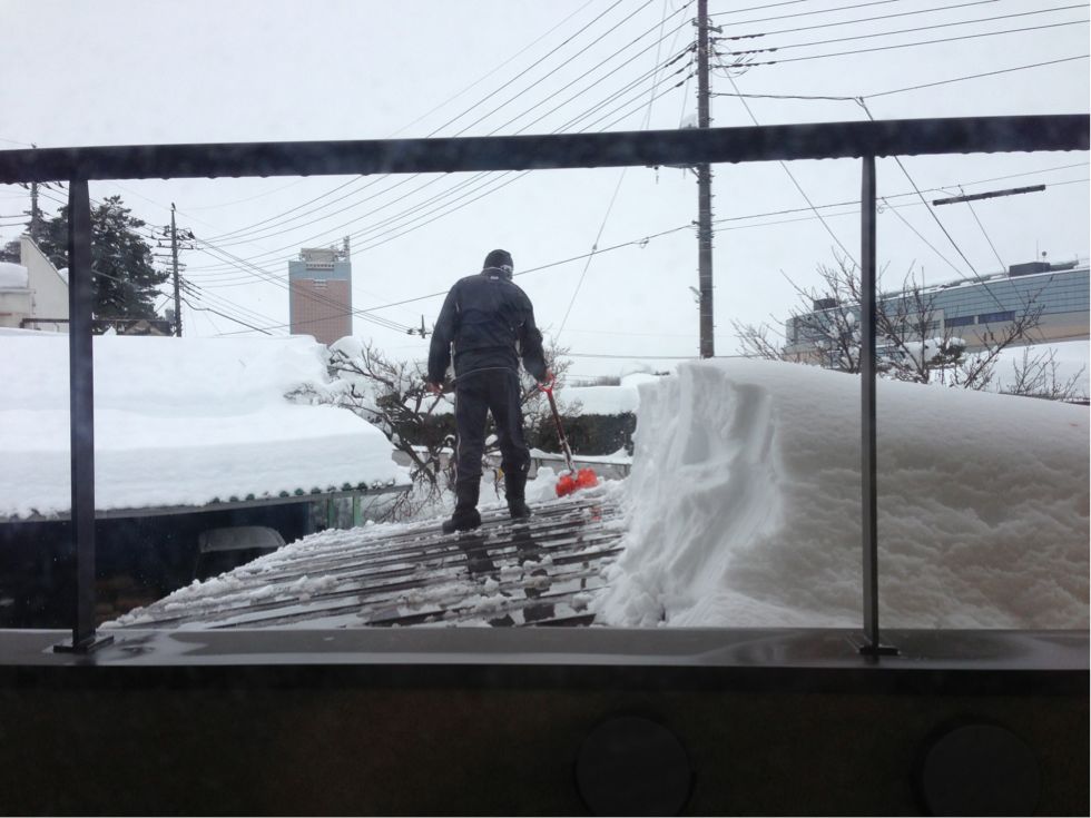 和室の屋根の雪下ろしを~。