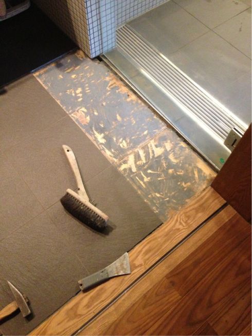 強化ガラスが割れないうちにタイルを少し下げてもらいました。