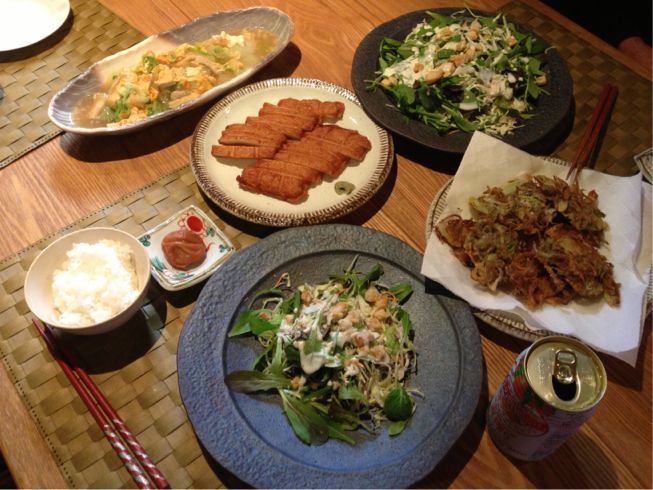 サラダとタコの唐揚げだけは作り、