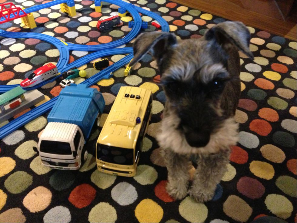 今日はおじいちゃんにゴミ収集車を買ってもらって帰ってきたsheeta。