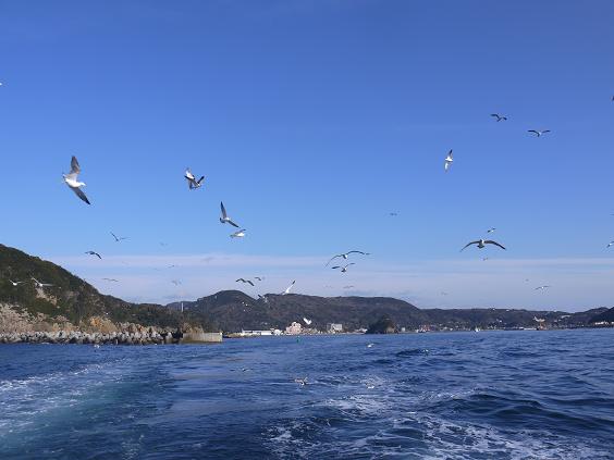 船の後を追いかけてくる沢山の鳥。