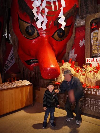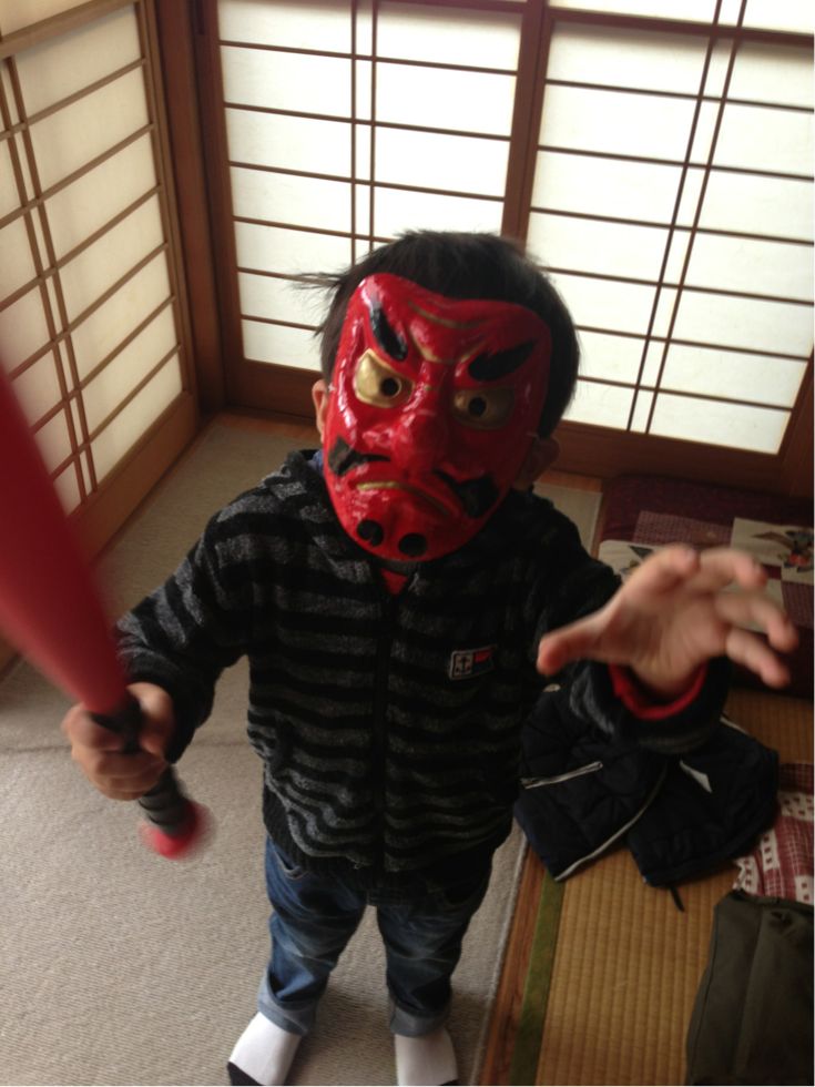 朝、返す天狗のお面を被って「鬼だぞー!」と遊んでました。