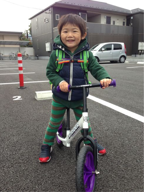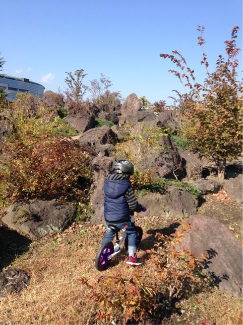 ストライダー・・・平らなところでスピード出す練習して欲しいのですが、