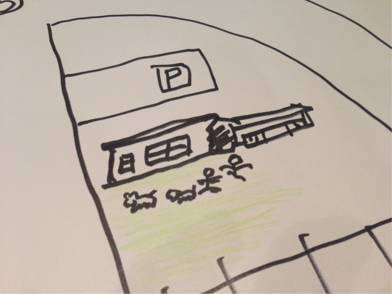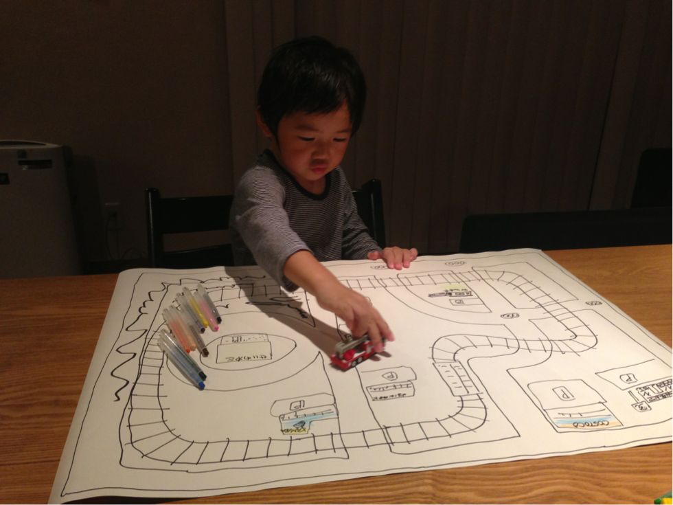 papaさんがポスターの裏に書いてくれた地図の上でのミニカー遊びです。