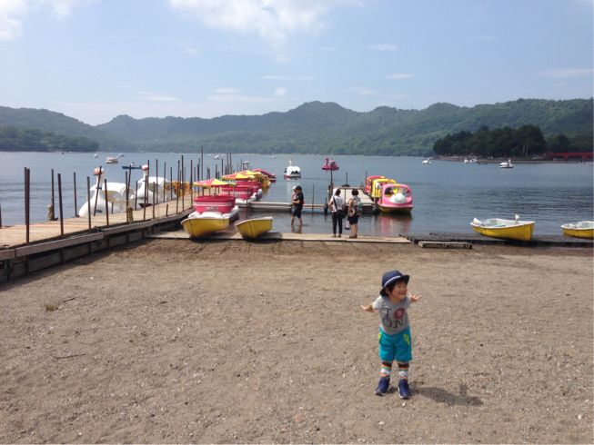 2人用足漕ぎボートにmamaと一緒に乗りました。