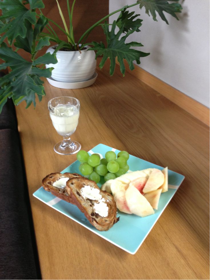 「ぶどう」「桃」「バナナ」「ウォールナッツレーズンパン&クリームチーズ」「オーガニック豆乳」