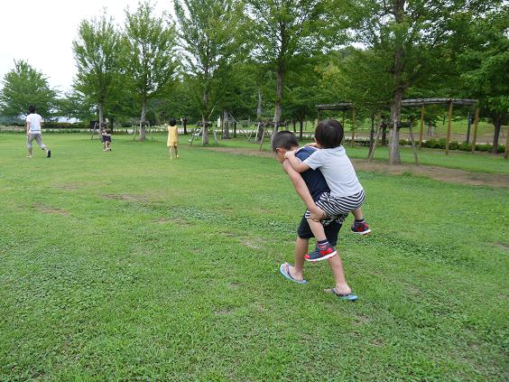 食後は、すご~く広い芝生の広場を走りまわりました。