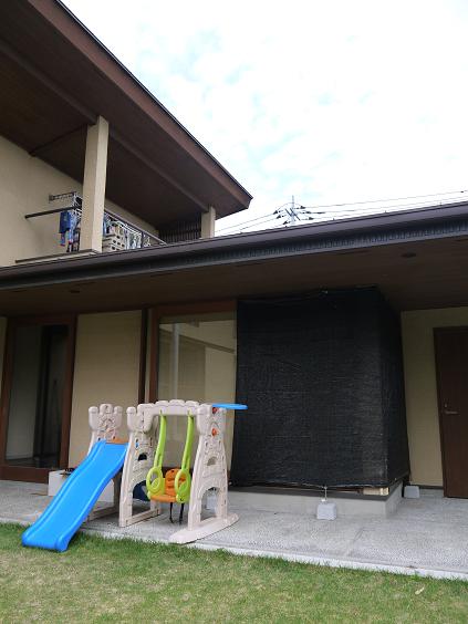 午後は、ホームセンターで買った遮光シートを和室の外に取りつけてもらいました。