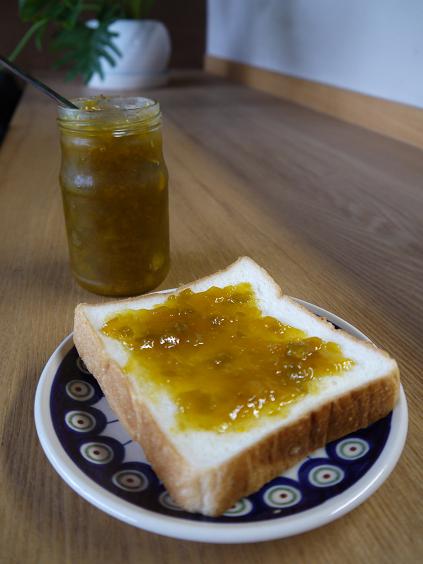 朝食は、食パンに昨夜作った梅ジャムを塗って~♪