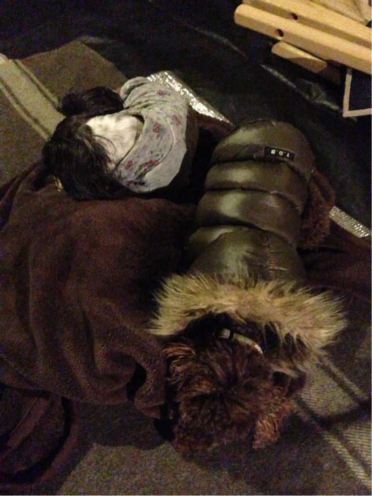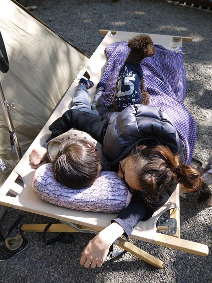 一番下(左側)で寝たので、移動してくるみんなを支える羽目になり~